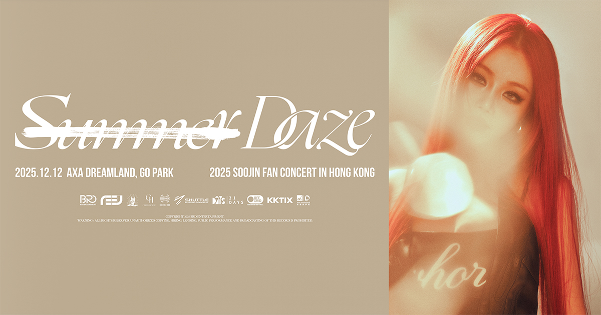 Soojin 將於2025年12月12日與您重溫夏日! 這次與香港SEOTANG們的特別約定,將在香港AXA Dreamland (西沙Go Park) 熱烈登場!本次’RE:SUMMER DAZE’粉絲演唱會的最大亮點,在於Soojin將以其標誌性的迷人舞姿與音樂,帶領所有觀眾穿越時空,在冬日中重燃夏日的炙熱與浪漫。
